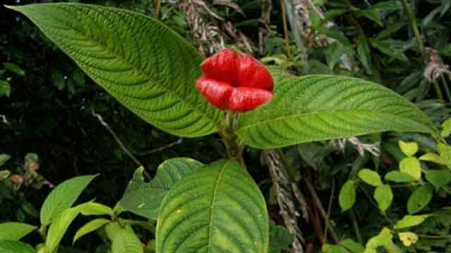 Tanaman ini bernama Psychotria elata. Tanaman kecil yang tumbuh di hutan tropis ini memiliki bunga yang dikenal dengan sebutan bunga bibir karena menyerupai bibir wanita bergincu merah.